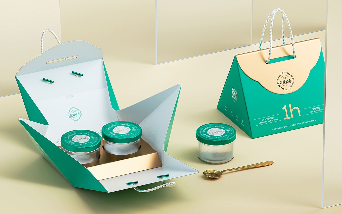 在本次愛馨綠品現(xiàn)燉燕窩的"外賣禮盒"產(chǎn)品包裝設(shè)計中,我們對燕窩包裝的屬性進行了深入思考。燕窩作為一種輕奢產(chǎn)品,其包裝不僅體現(xiàn)了產(chǎn)品的品質(zhì),更重要的是給消費者帶來一種儀式感和體驗。